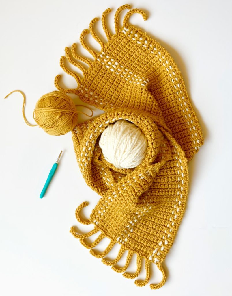 (Side note, in the video I say I’m making a Half Double Crochet for the fringe, it’s actually a half double slip stitch.)